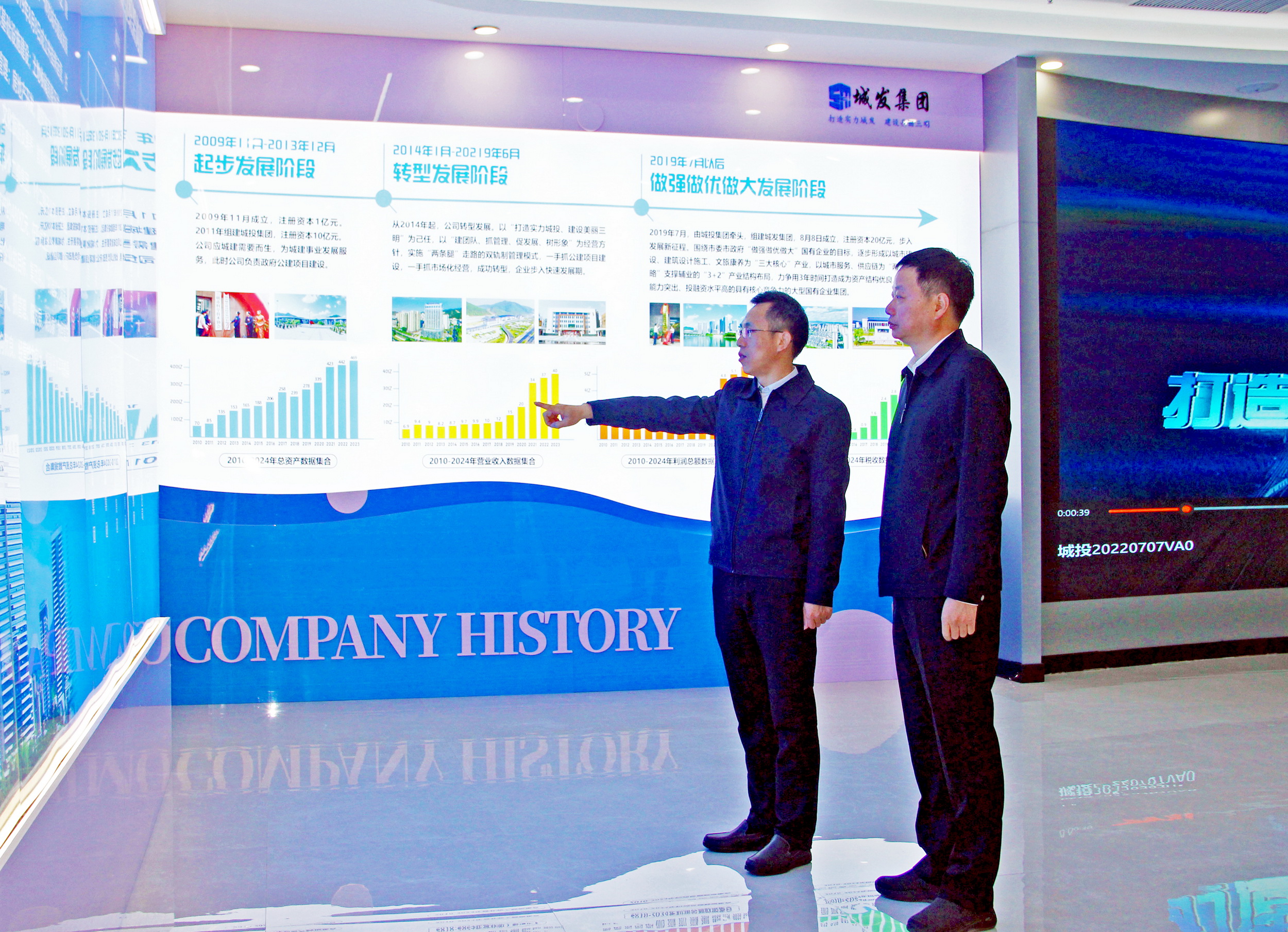 1月15日上午,吴健成副市长到线上av 走访调研,实地察看集团线上av展厅,并与城发集团领导班子座谈交流,详细了解企业经营情况。市国资委副主任林廷株、市政府办等相关人员陪同调研,线上av 领导班子成员、各部室及权属企业负责人参加座谈。