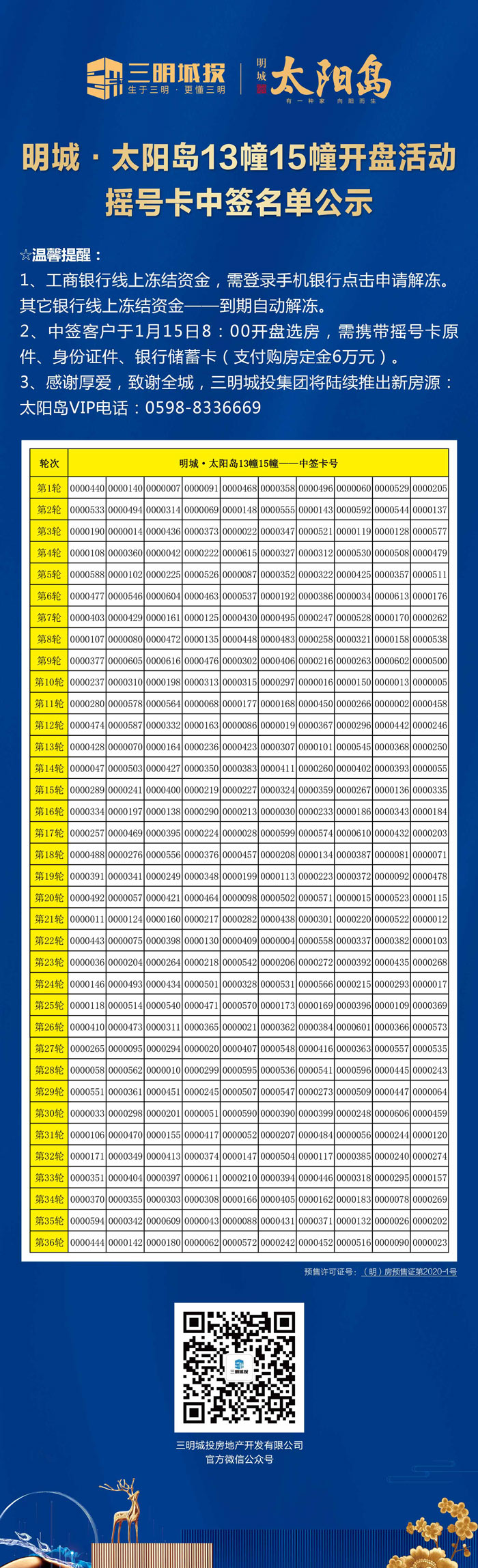 明城·太阳岛13幢15幢开盘“摇号卡办理名单”公示