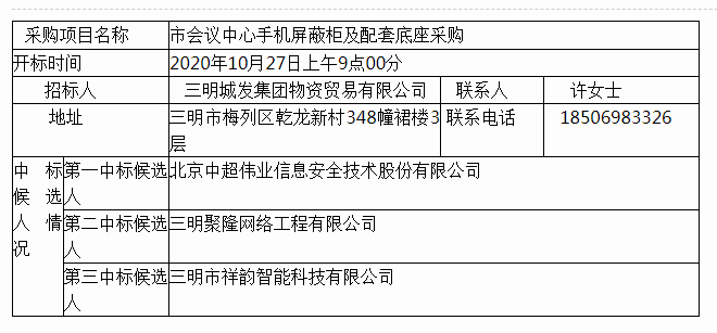 市会议中心手机屏蔽柜及配套底座采购中标公示