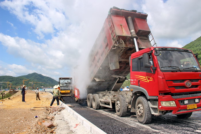 三明南站综合枢纽工程—工业南路延伸段进行沥青摊铺