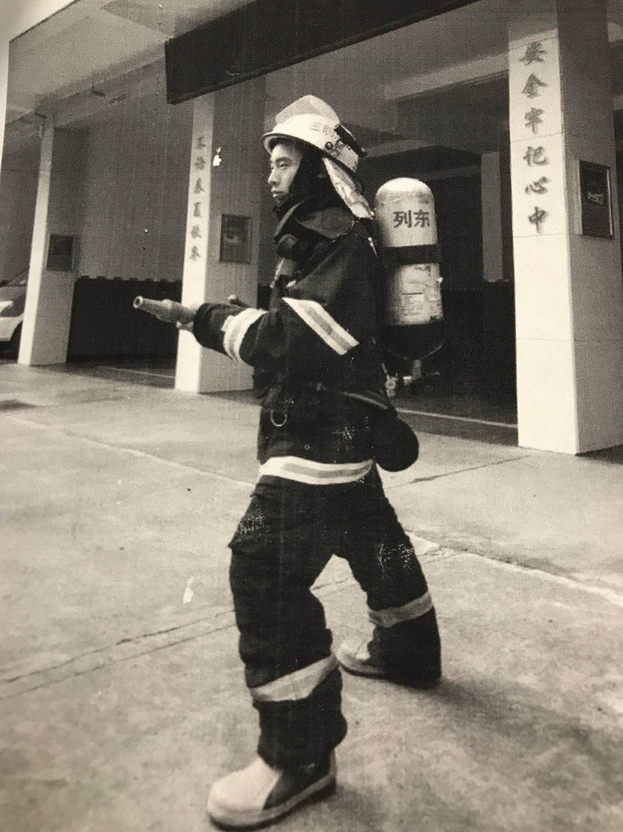 中庭水景喷水口造型如图为消防员抱水枪造型,出水口为水抢眼,材质为内玻璃钢、外部镀铜 |