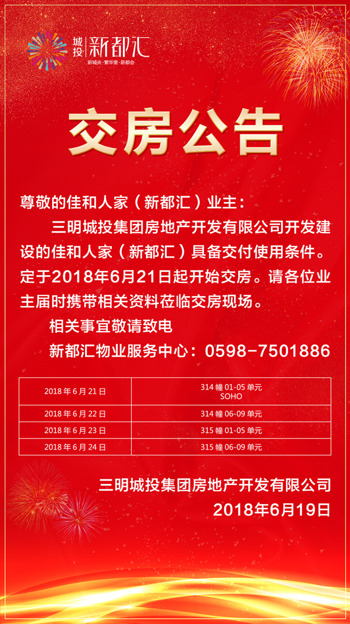 佳和人家(新都汇)交房公告